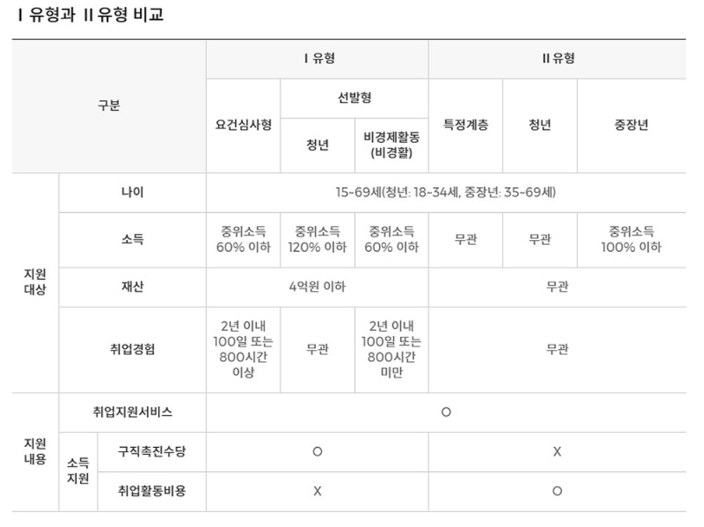 국민 취업지원제도 지원은 1유형과 2유형 2가지 유형이 있습니다
