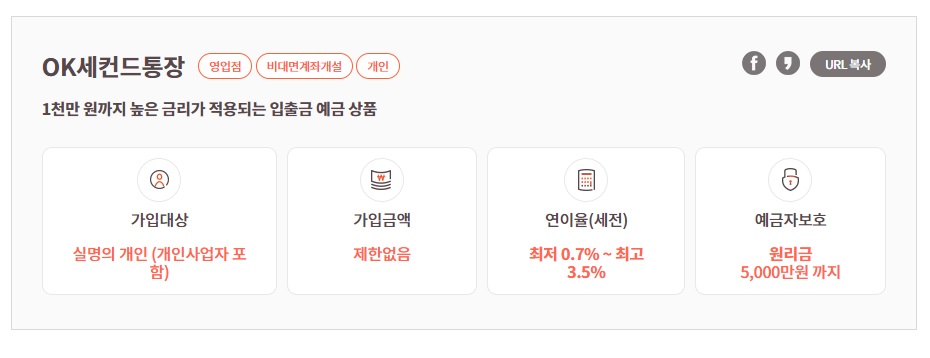 5. OK저축은행 - ok세컨드통장 : 연 금리 3.50%