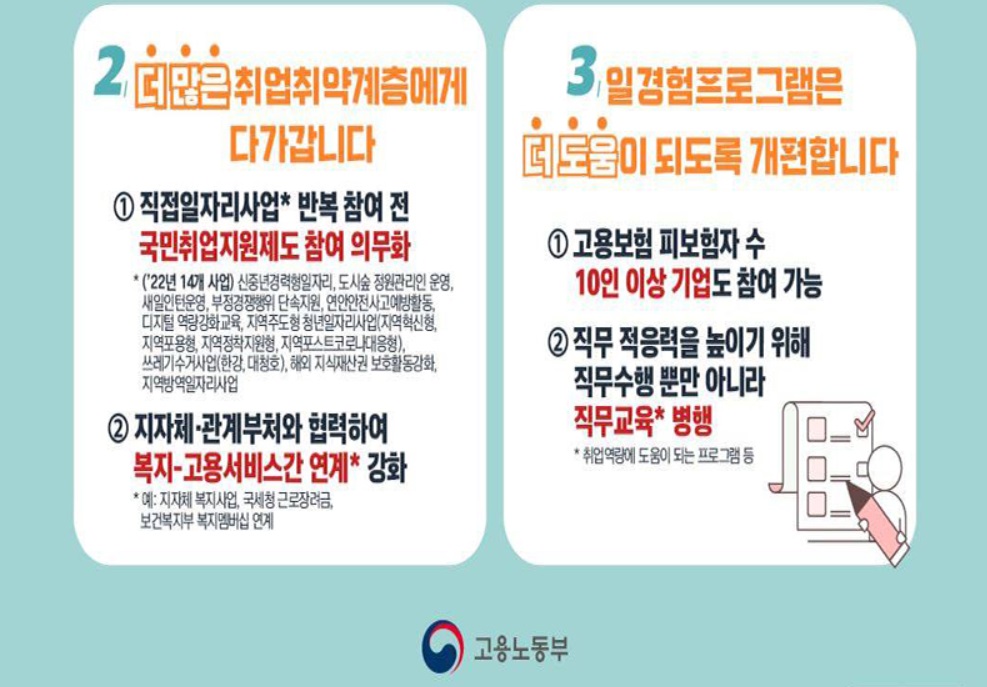- 직접일자리사업 반복 참여 전 국민취업지원제도 참여 의무화