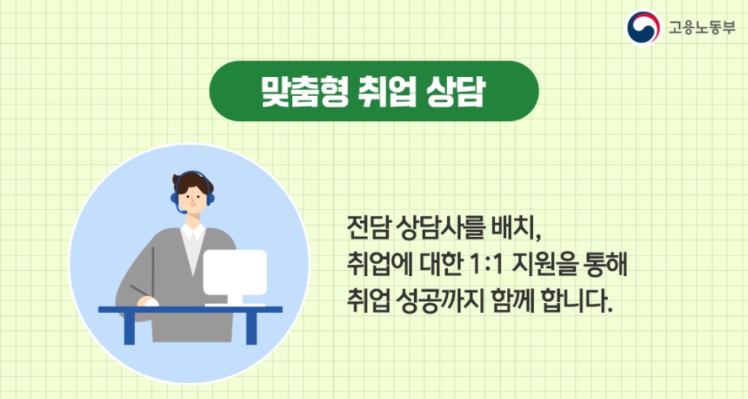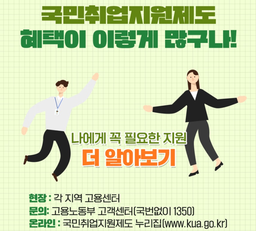 현재 취업이 어려우신 분들은 고용노동부에서 실시하는 국민취업지원제도 서비스를 적극활용해보시길 바랍니다.
