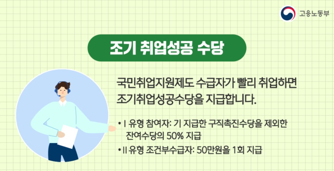 - 조기취업 시 남은 구직촉진수당의 50% 지원