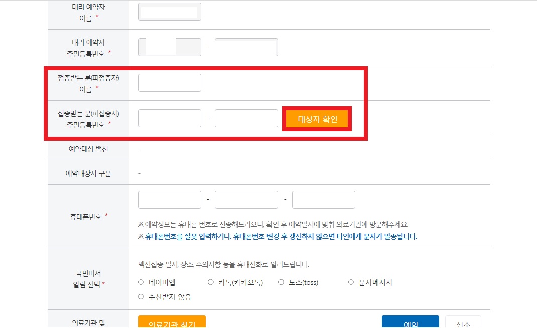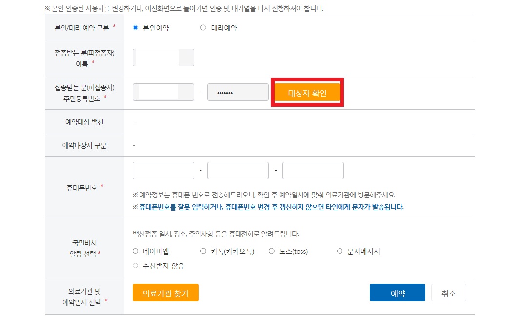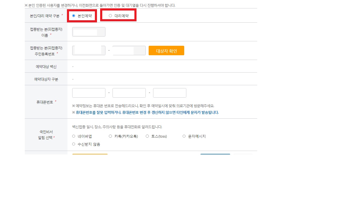 본인 뿐만 아니라 다른 사람의 코로나 예방접종 예약도 가능한데요, 이때는 접종하는 분의 주민등록번호를 알아야하니 참고해주세요.