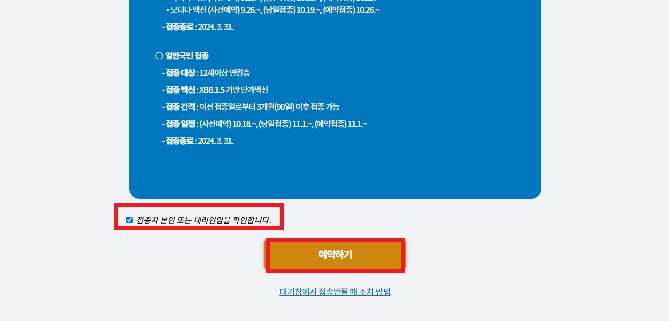 가장 먼저 코로나 예방접종 예약 시스템에 접속하여 접종자 또는 대리인을 확인합니다에 동의 후 예약하기를 누르시면 됩니다.